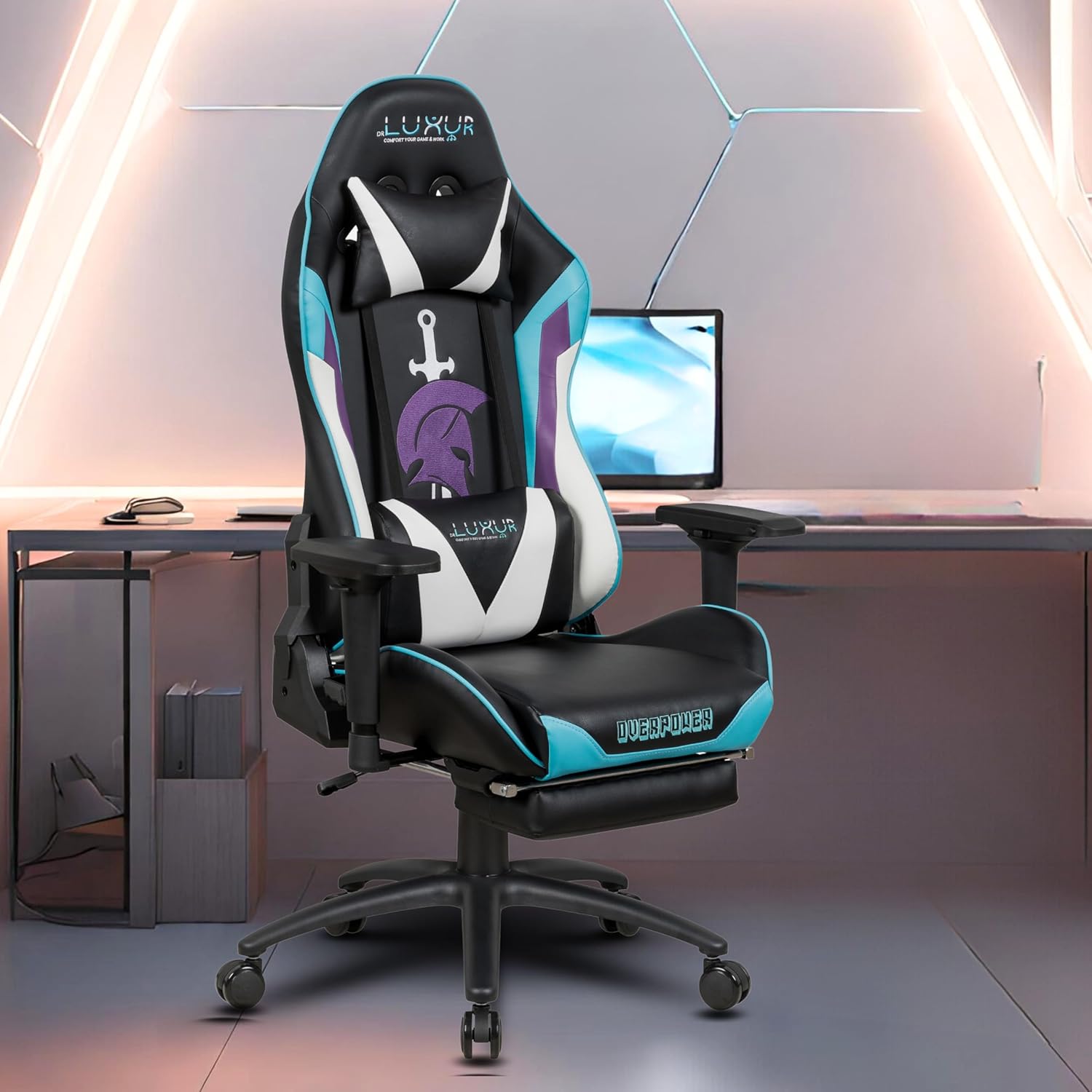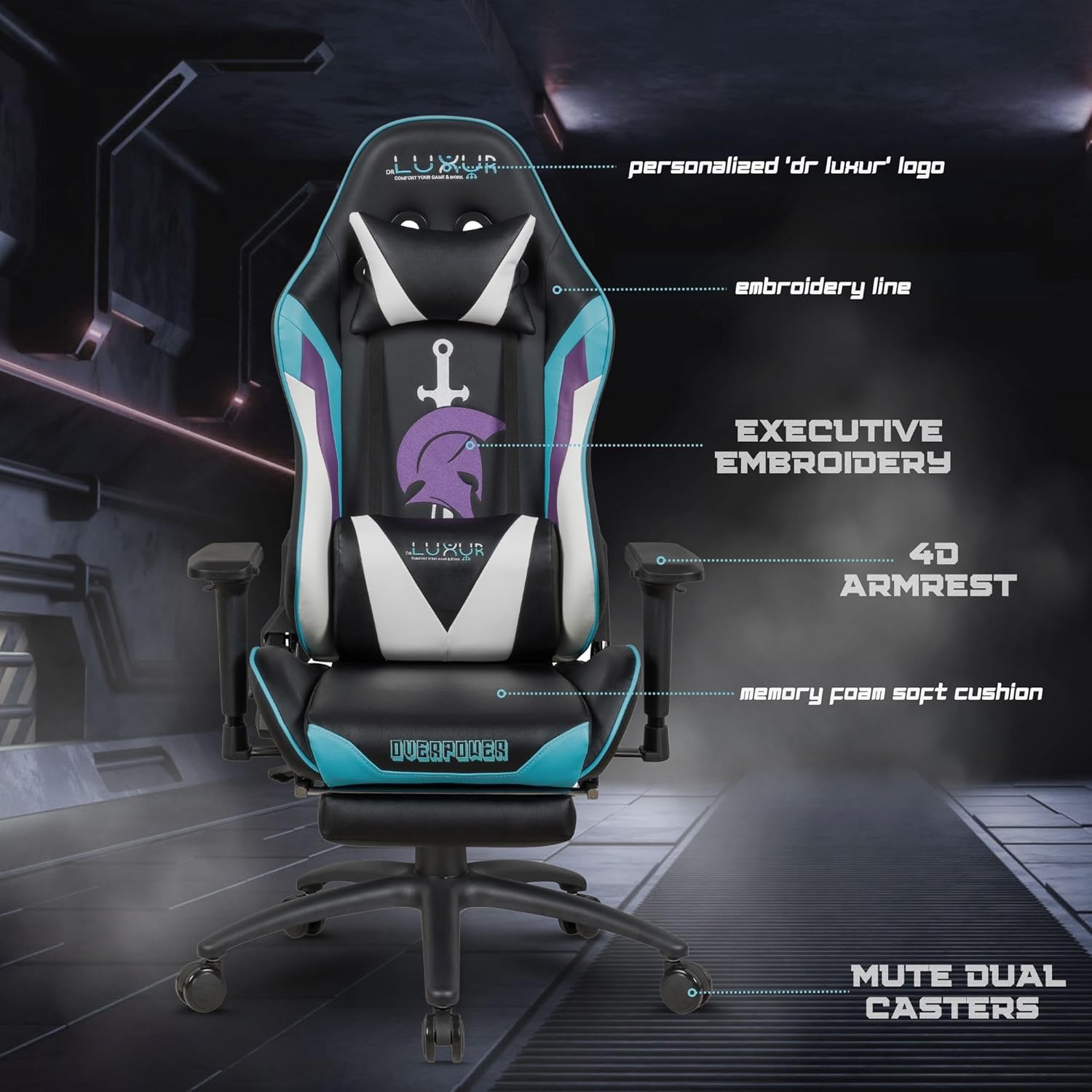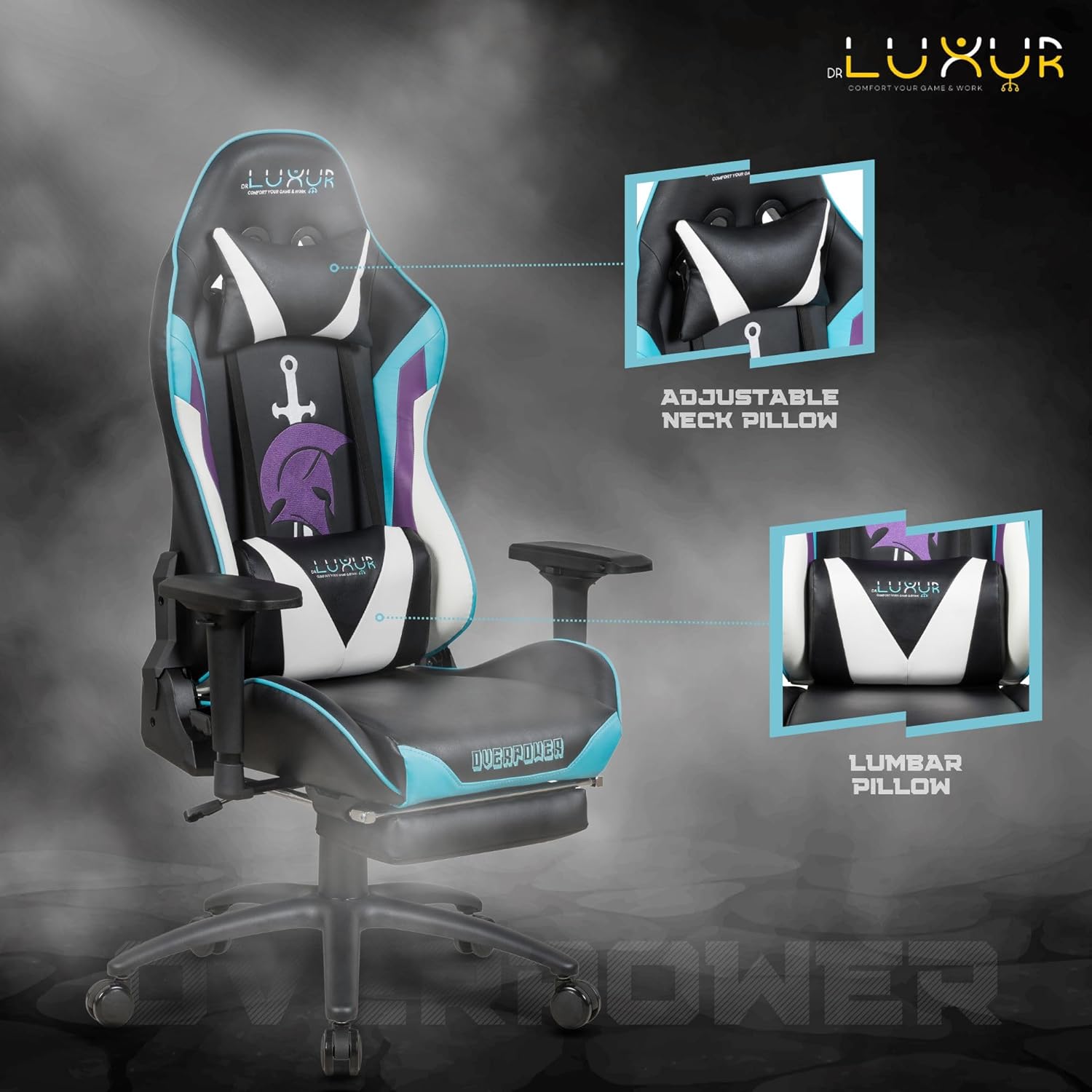 Dr Luxur Polyurethane Overpower Gaming Chair For Gaming,Home Office&Study- Perfect For Work From Home With Lumbar Support,4D Armrest,Footrest&180 Degree Recline,And Multi Locking Position(Overpower)