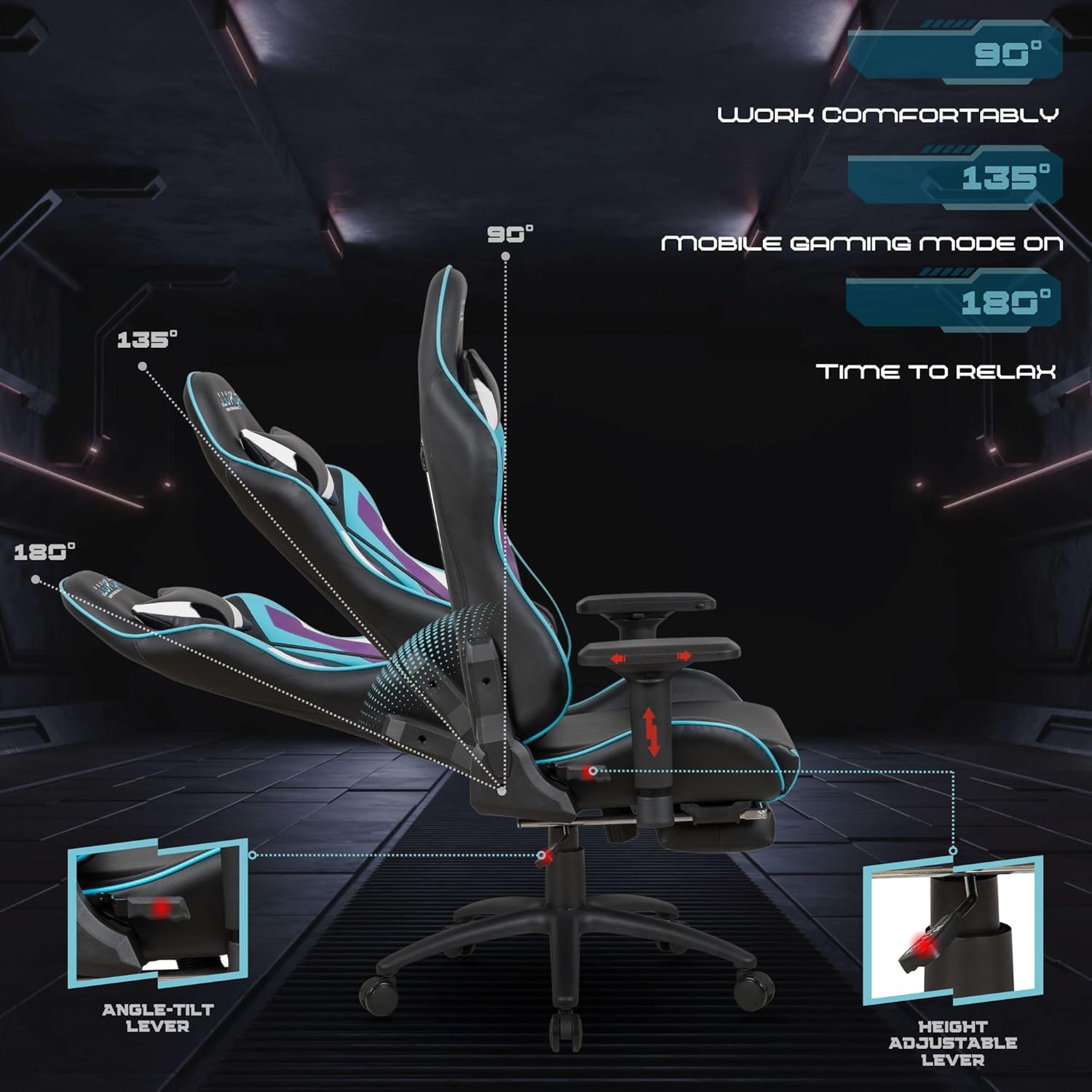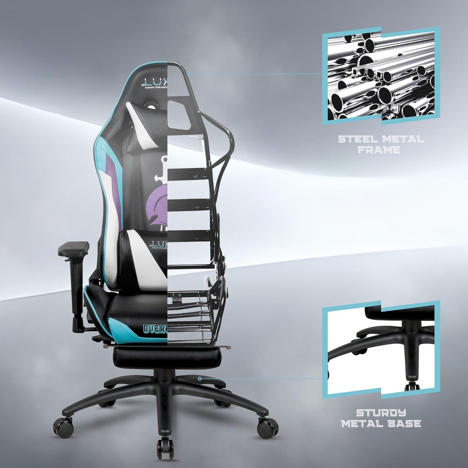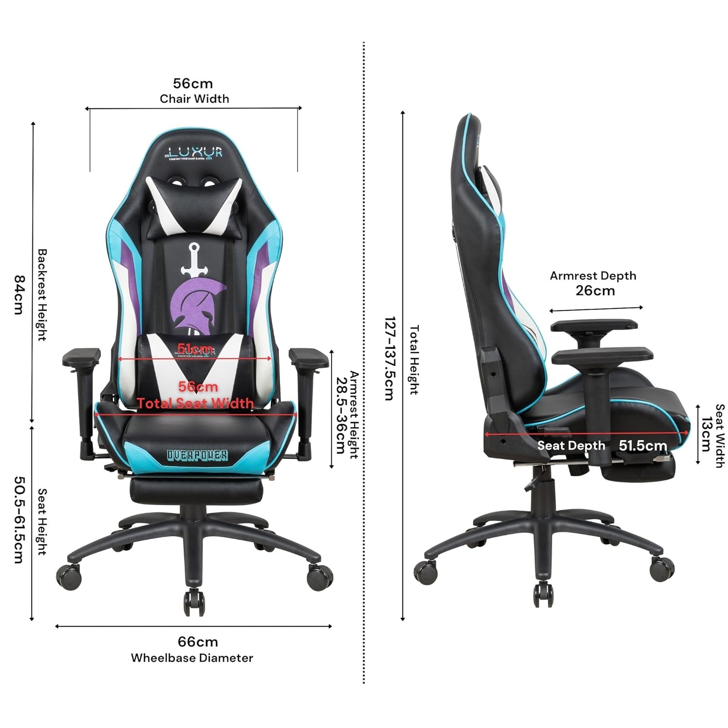 Dr Luxur Polyurethane Overpower Gaming Chair For Gaming,Home Office&Study- Perfect For Work From Home With Lumbar Support,4D Armrest,Footrest&180 Degree Recline,And Multi Locking Position(Overpower)