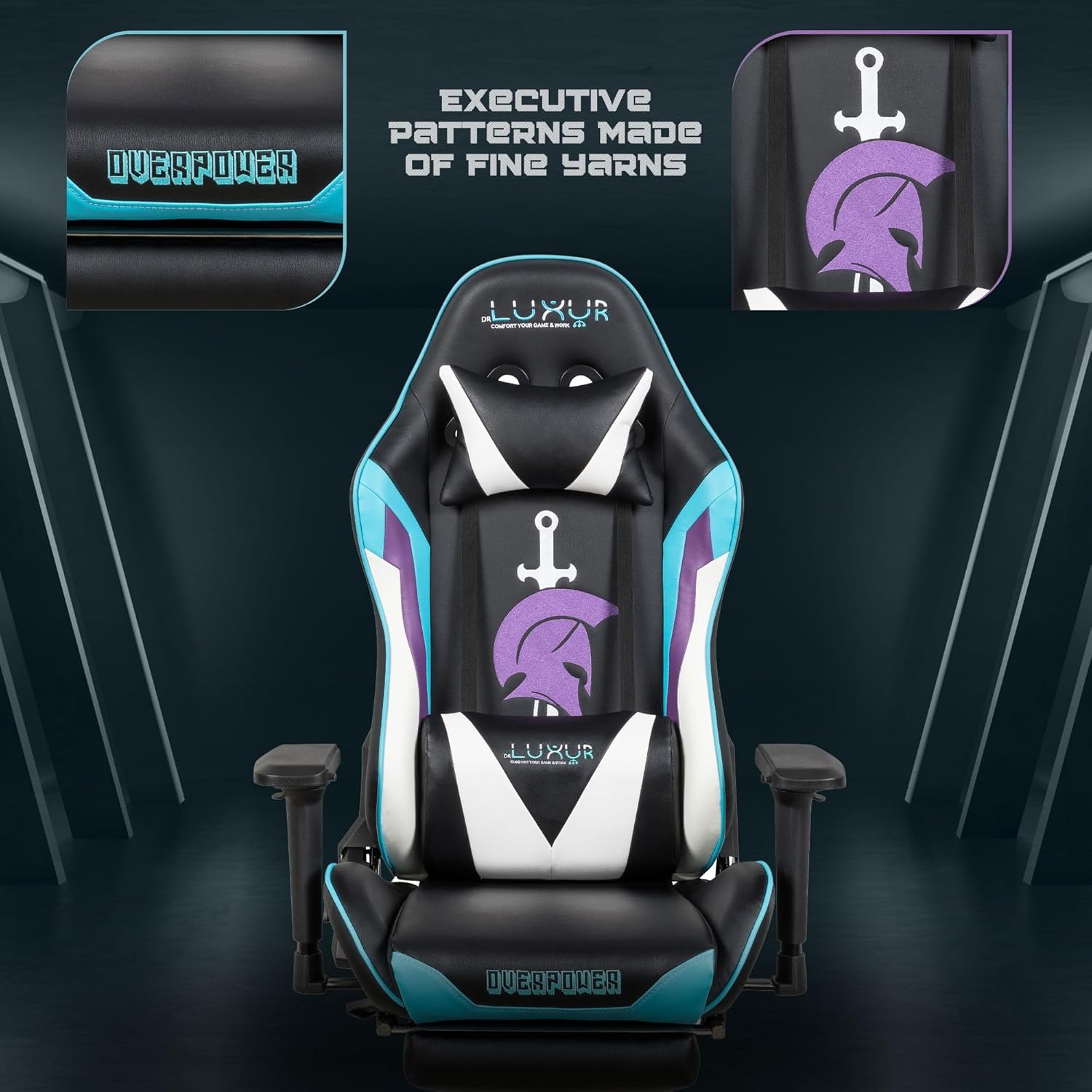 • HIGH DENSITY MOLDED CUSHIONS: The denser, durable cushions have a plush feel and offer better contouring, allowing your weight to apply just enough pressure as they mold to support your unique body shape reducing your back pain, bad posture and neck pain. MULTI_LAYERED SYNTHETIC LEATHER: The Dr. Luxur gaming chair with foot rest comes wrapped in a material that’s tougher and more durable than standard PU leather, making it better suited to withstand the wear and tear from hours of daily use.