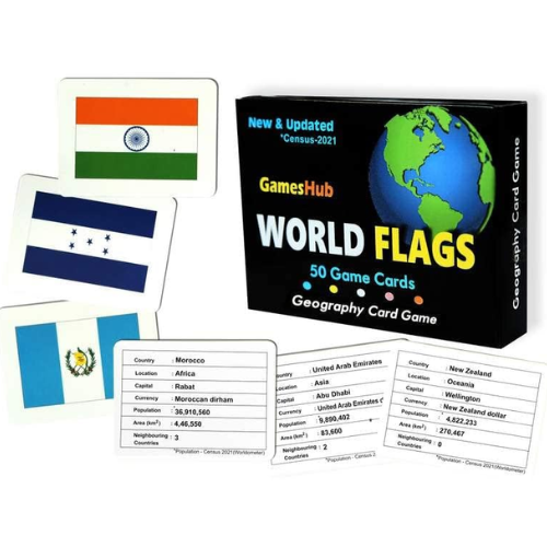 Be the first to review “GAMESHUB 50 Countries Flags Flash Cards Game for Kids – 4 in 1 Gaming Flash Cards – Laminated Paper Cards of The Flags of The World – Size 3 x 4 inch”