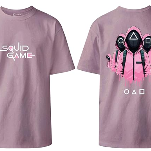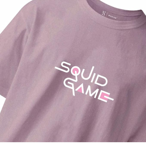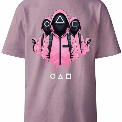 HAZLAR Unisex Round Neck Regular Fit Squid Games Pink Guard Print Purple Tshirt