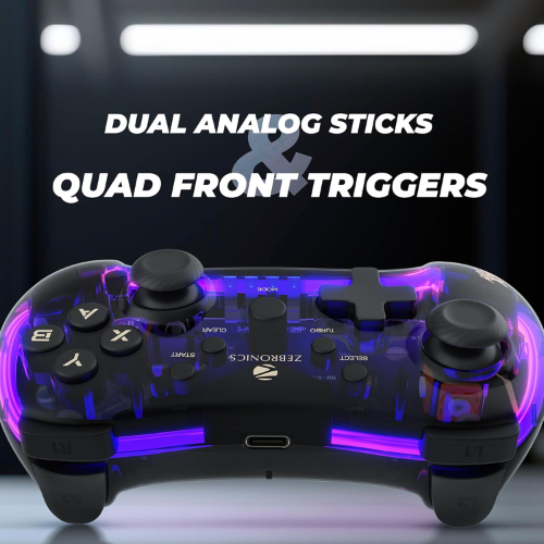 ZEBRONICS MAX FURY Transparent RGB LED Illuminated Wired Gamepad for Windows PC, Android, with Dual analog sticks, Quad front triggers, Dual motors force, Haptic Feedback